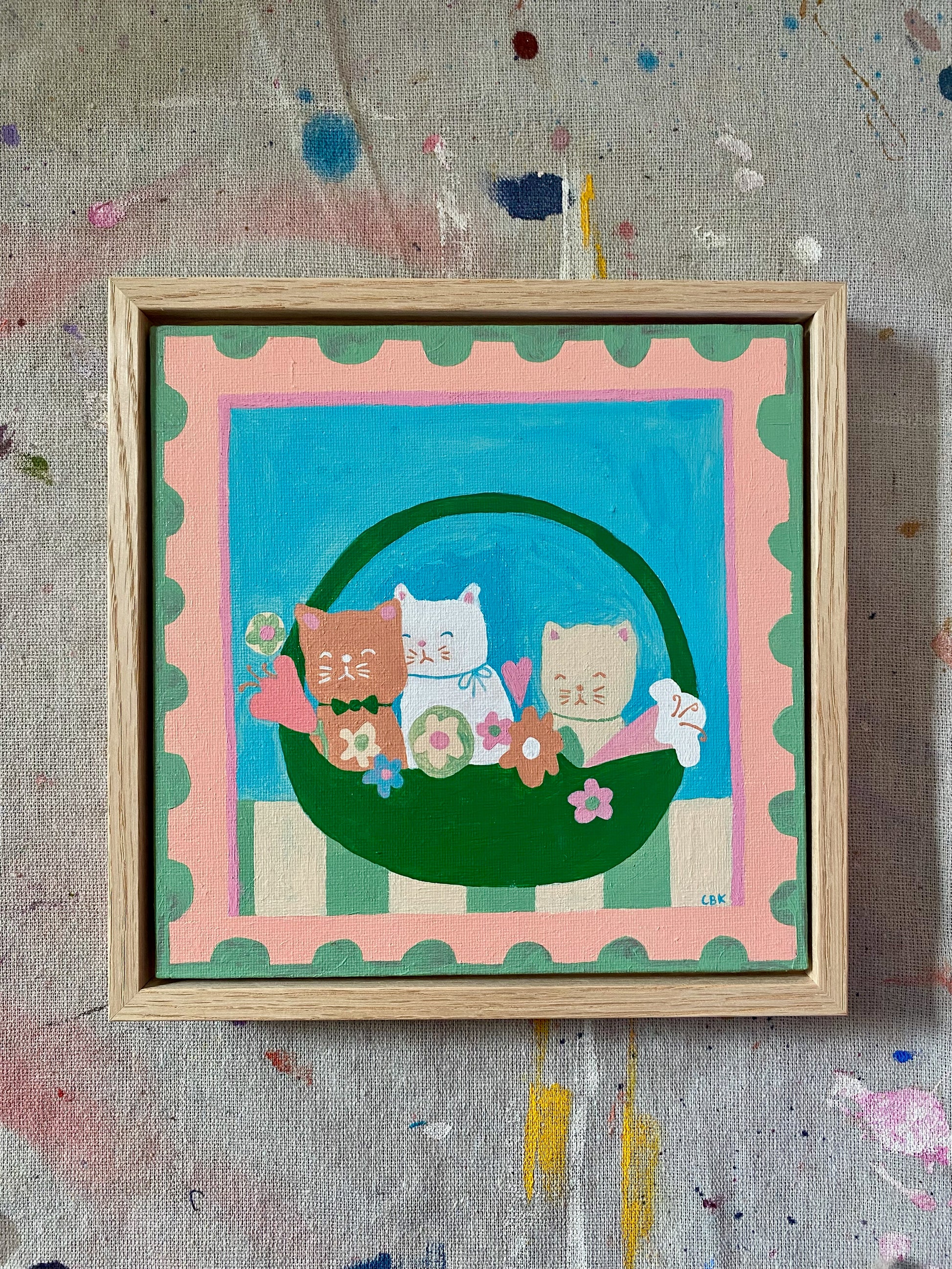 Acrylic painting on framed canvas board, framed in Oak by Up In Frames.